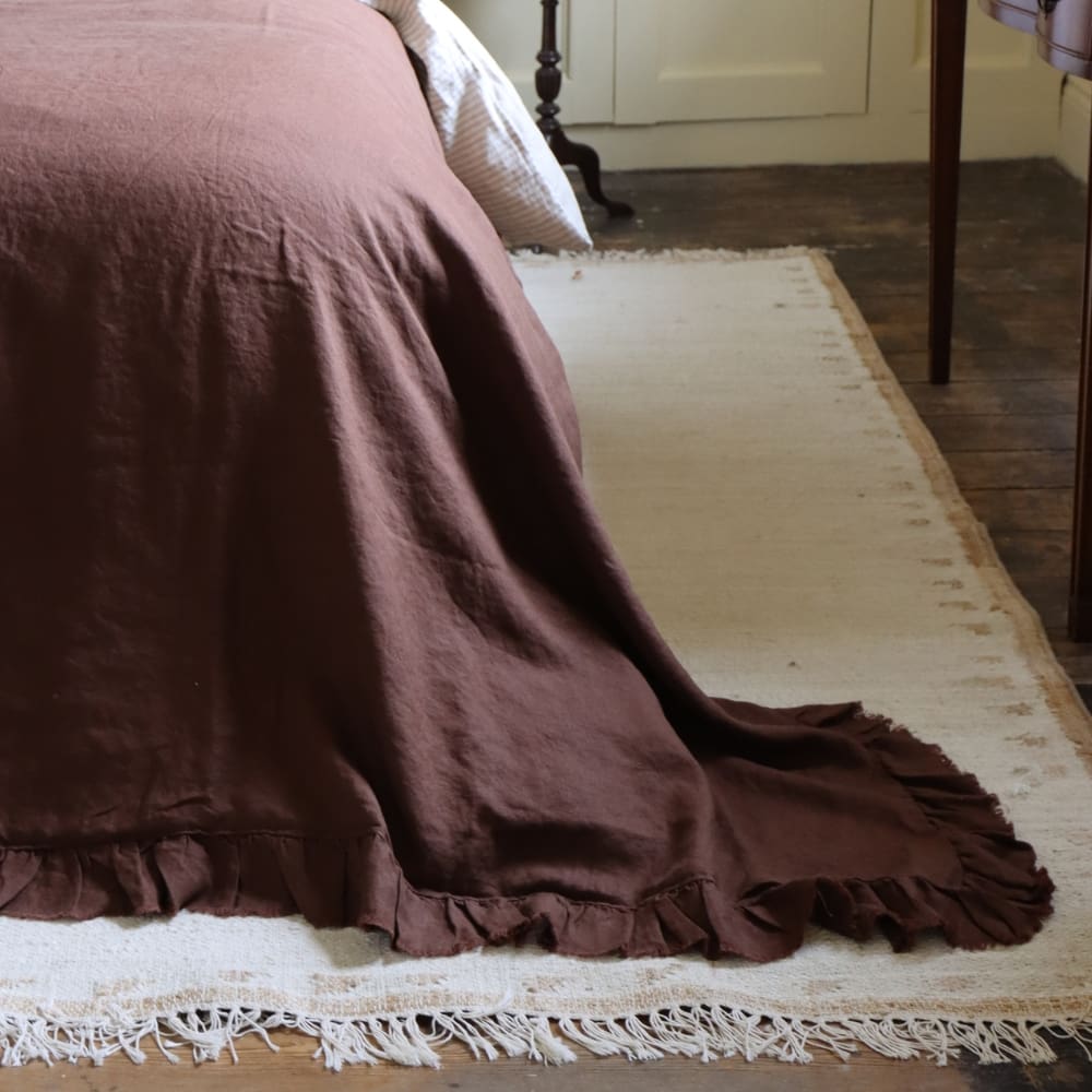 This bedspread is part of our curated bedding collection, designed to coordinate seamlessly with our range of cushions. For a perfectly styled look, pair it with the Hallie Dark Brown Ruffle Cushion, featuring the same soft linen fabric and ruffle detail. You can also mix with neutral or patterned cushions to add depth and interest, creating a warm and inviting bedroom aesthetic.