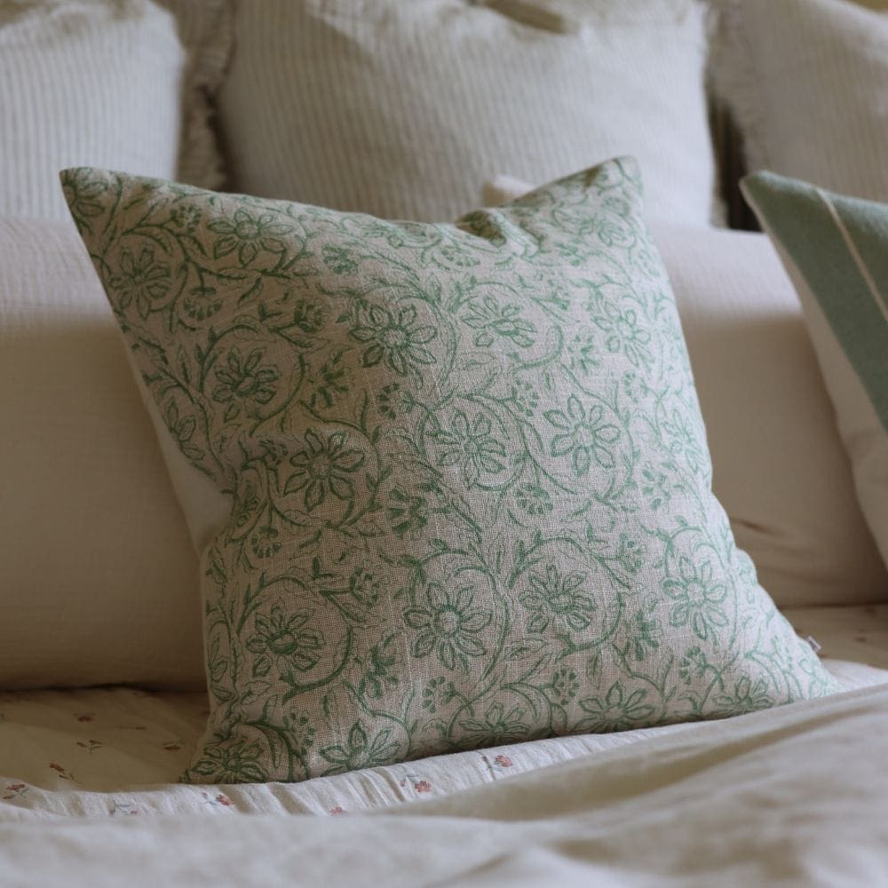 Introducing the Ivy Sage Green Print Cushion – a perfect blend of style and comfort to elevate your living space. Immerse yourself in the comfort of this 100% cotton cushion – designed to add a touch of sophistication to any room.