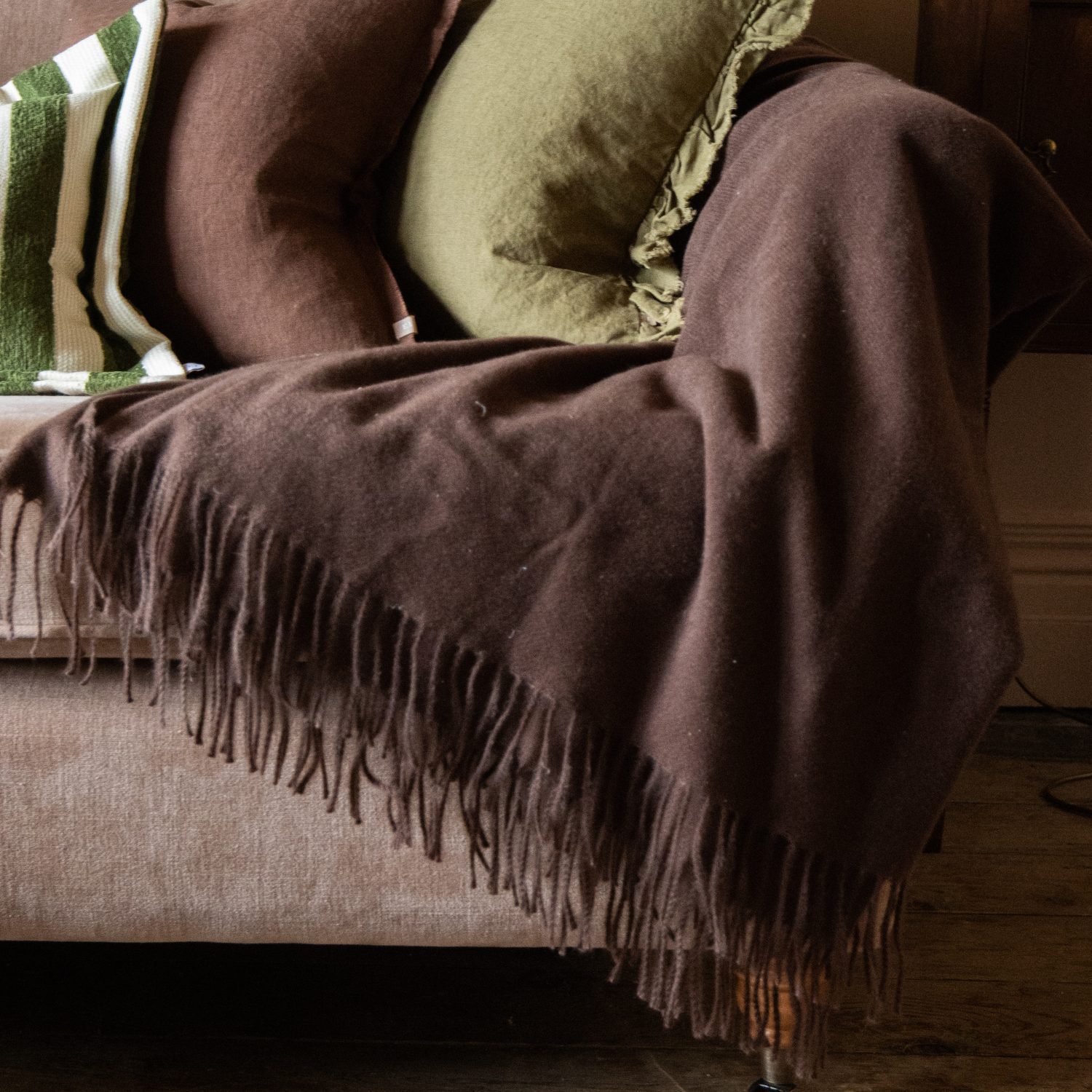 Wrap yourself in warmth and style with our Large Della Dark Brown Throw. Rich, luxurious and beautifully crafted, this throw is the perfect finishing touch for any sofa, armchair or bed, bringing an instant sense of cosiness and considered style to your living space.